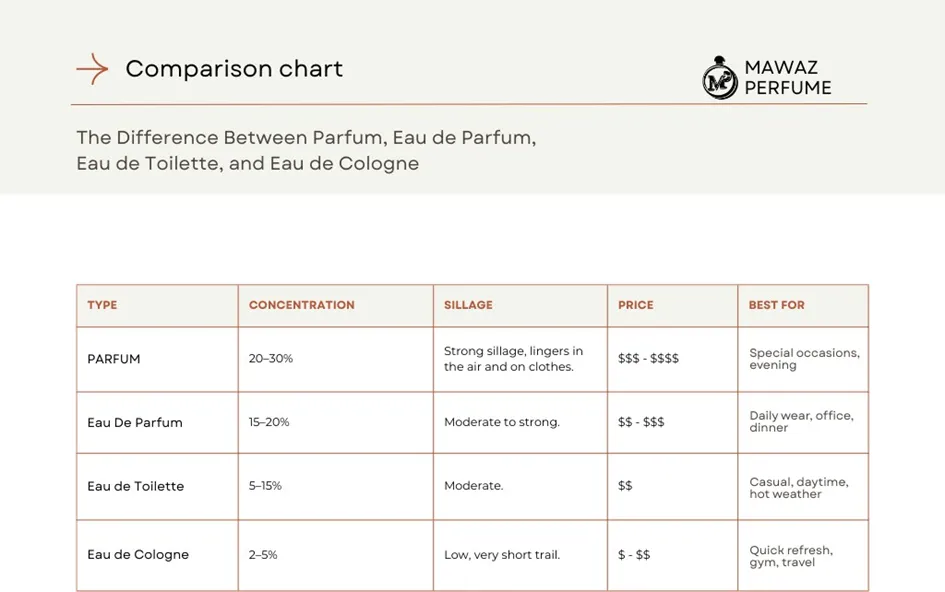 Choosing between Eau de Parfum (EDP), Eau de Toilette (EDT), and Eau de Cologne (EDC) depends largely on your lifestyle, preferences, and when you plan to wear the fragrance.