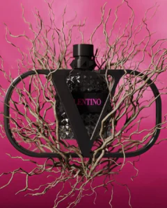 Packaged in Valentino’s signature studded bottle, symbolizing strength and edgy elegance.
